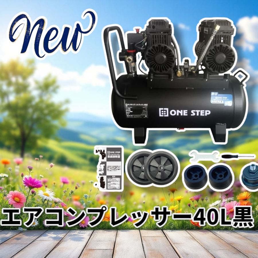 - 自転車 > メンテナンス > エアーコンプレッサー 40L 100v 静音 小型オイルレス ブラック 2229 エアーコンプレッサー 40L 100v 静音 小型オイルレス ブラック 2229